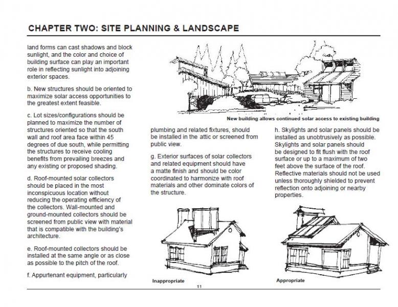 - Passive solar energy techniques are strongly encouraged where not in conflict with preserving the natural features of the site.