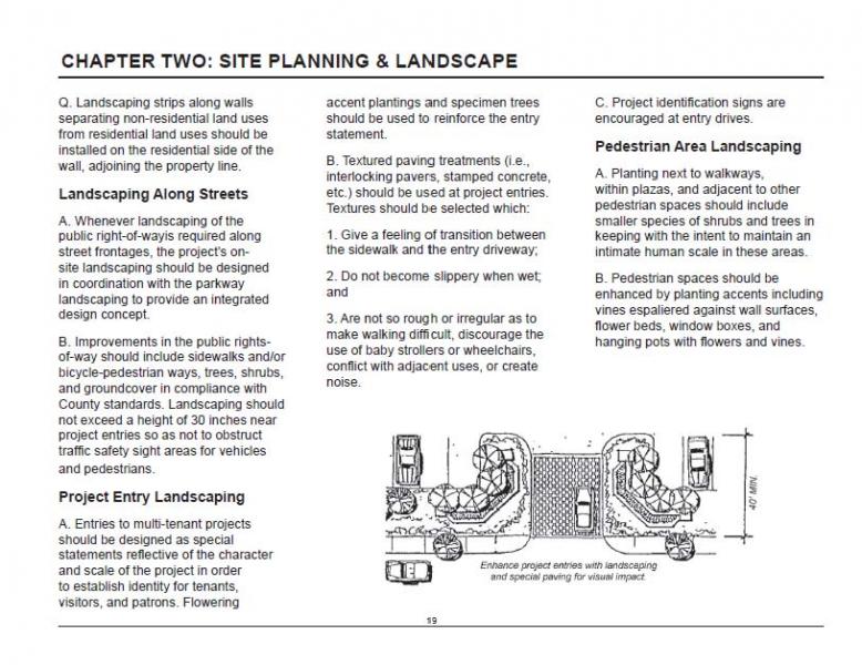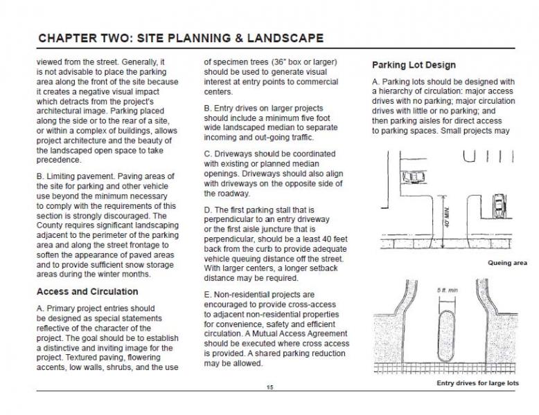 - Use the narrowest roadway design possible while maintaining required emergency vehicular access for low-traffic, residential areas.