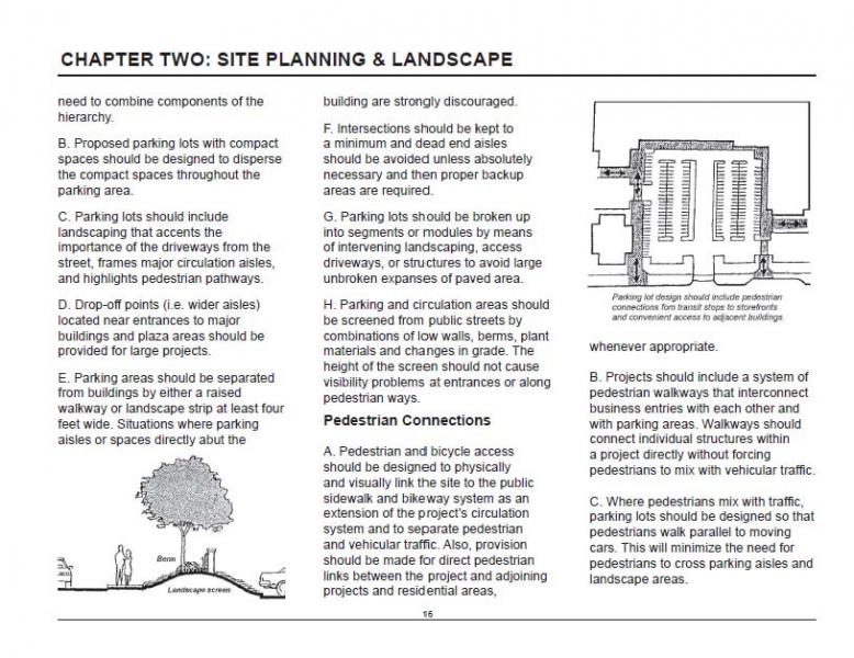 - Narrow roadways should be used, which can reduce the cost of street paving and open up more land for development.