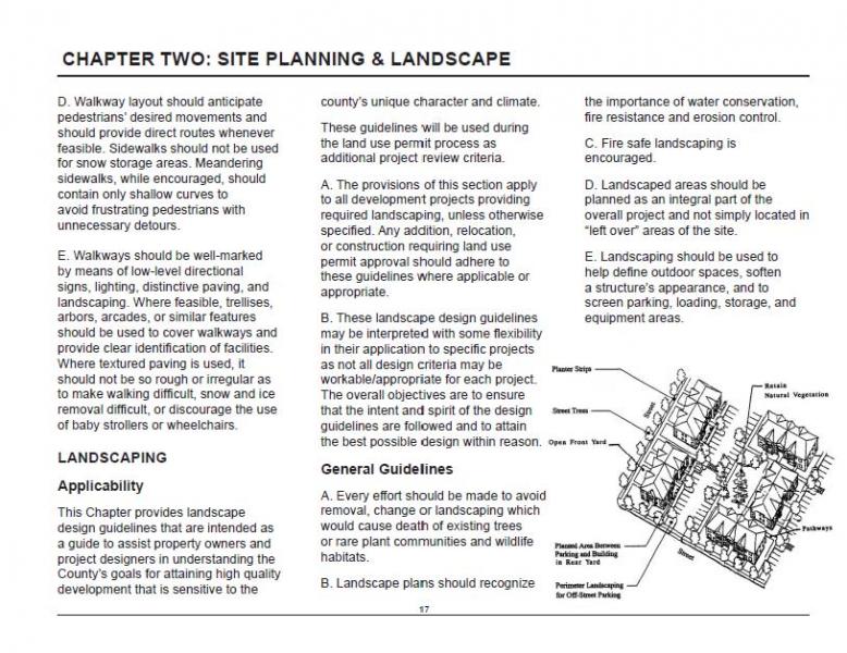 - Open Space/Cluster Design. Development that reserves part of the site for open space and retains the natural vegetation is strongly encouraged. Water and land resources are greatly enhanced by untouched, natural terrain. Developers will be allowed to maintain the original net density of the site while building on a smaller area within the site. In addition, density bonuses may be awarded for increasing the amount of open space.