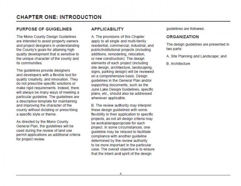 - The purpose of this chapter is to provide alternative development regulations within Mono County to accomplish the following: