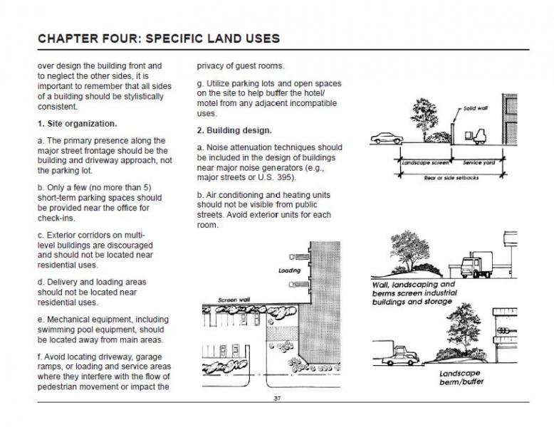 Policy 1.A.4. Where possible, less-intrusive noise mitigation (e.g., landscaped berms, open space buffers) should be encouraged rather than sound walls to preserve view corridors. Where the use of a sound wall cannot be avoided, require a combination of walls and earth berms to reduce noise and the use of vegetation or other visual screening methods to soften the visual appearance of the wall and further reduce noise.
