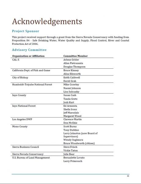 The work upon which this publication is based was funded in part through a grant awarded by the California Strategic Growth Council. Disclaimer: The statements and conclusions of this report are those of Mono County and not necessarily those of the California Strategic Growth Council or of the California Department of Conservation, or its employees. The California Strategic Growth Council and the California Department of Conservation make no warranties, express or implied, and assume no liability for the information contained in the succeeding text.