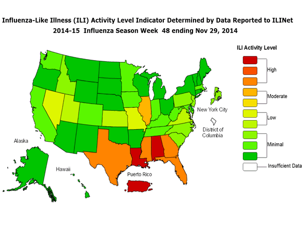 The flu season has begun earlier than last year, with high levels of illness being reported from states in the southeast. Five pediatric deaths have been reported so far. Over 500 hospitalizations have been reported nationally. Southern California is reporting increased flu activity, with an outbreak in a long-term care facility occurring already. Only sporadic activity has been reported in the Eastern Sierra so far.
