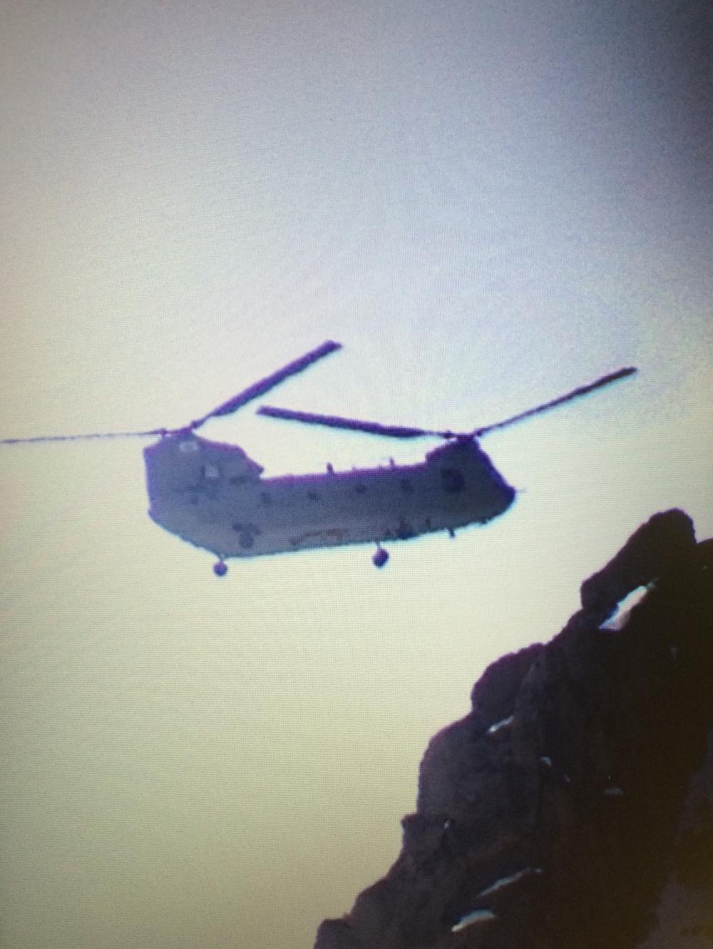 The CH-47-F helicopter was one of ten delivered to the National Guard in December. This rescue was the first one for this model. New equipment on this model was a critical component in the helicopter being able to rescue the hiker in high altitude, windy conditions and a steep slope location. The helicopter pilot was able to use new ‘hover hold’ features to maintain a precise position near the cliff face during the extraction operation.